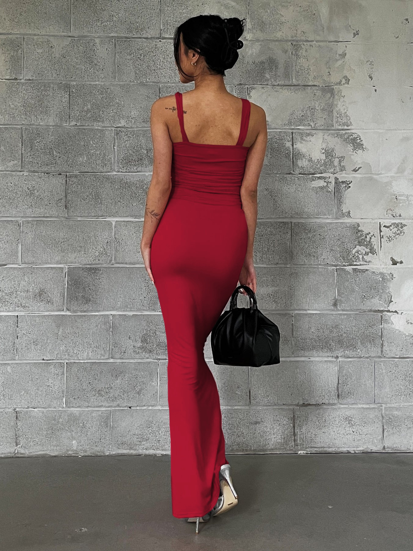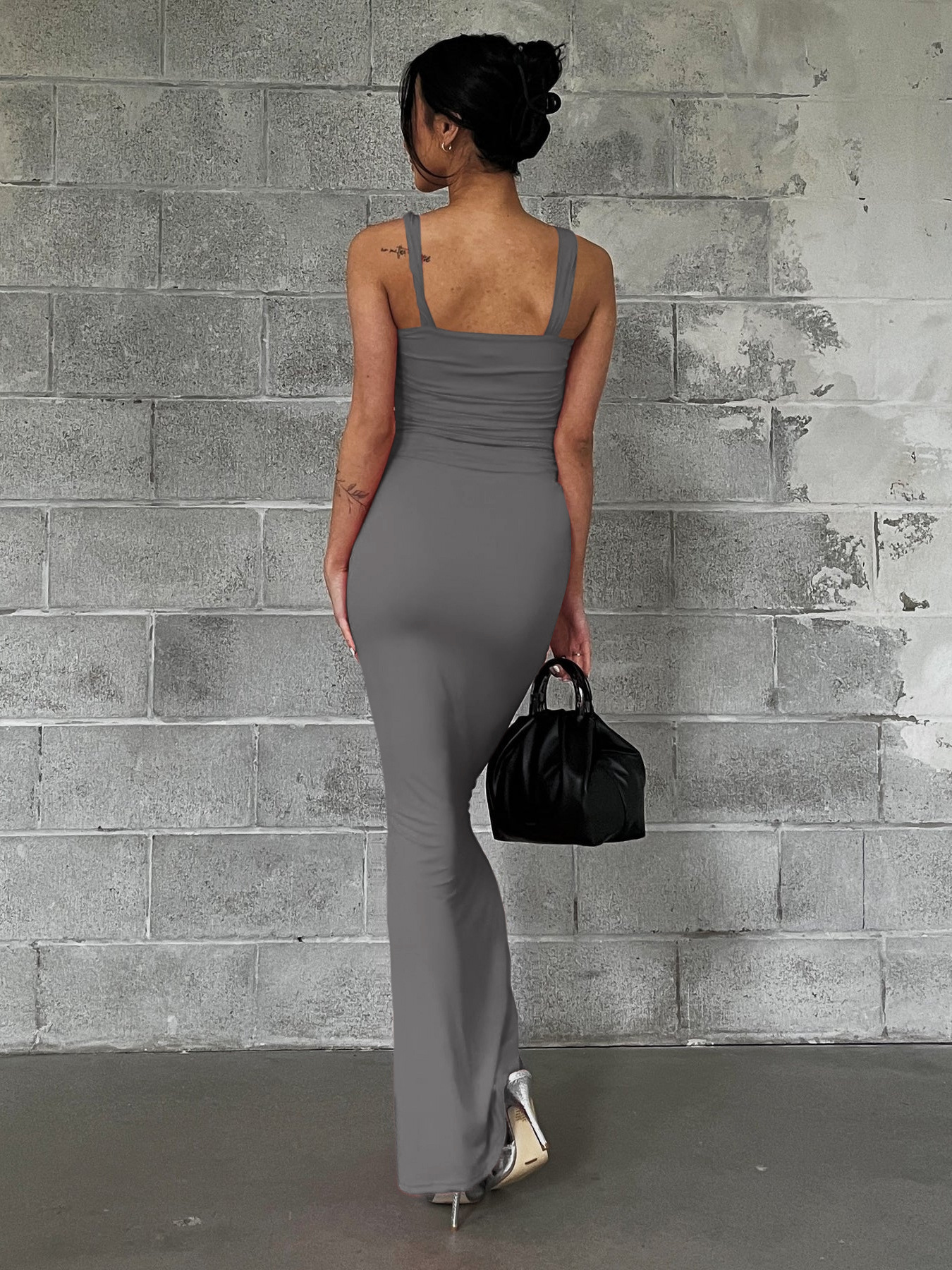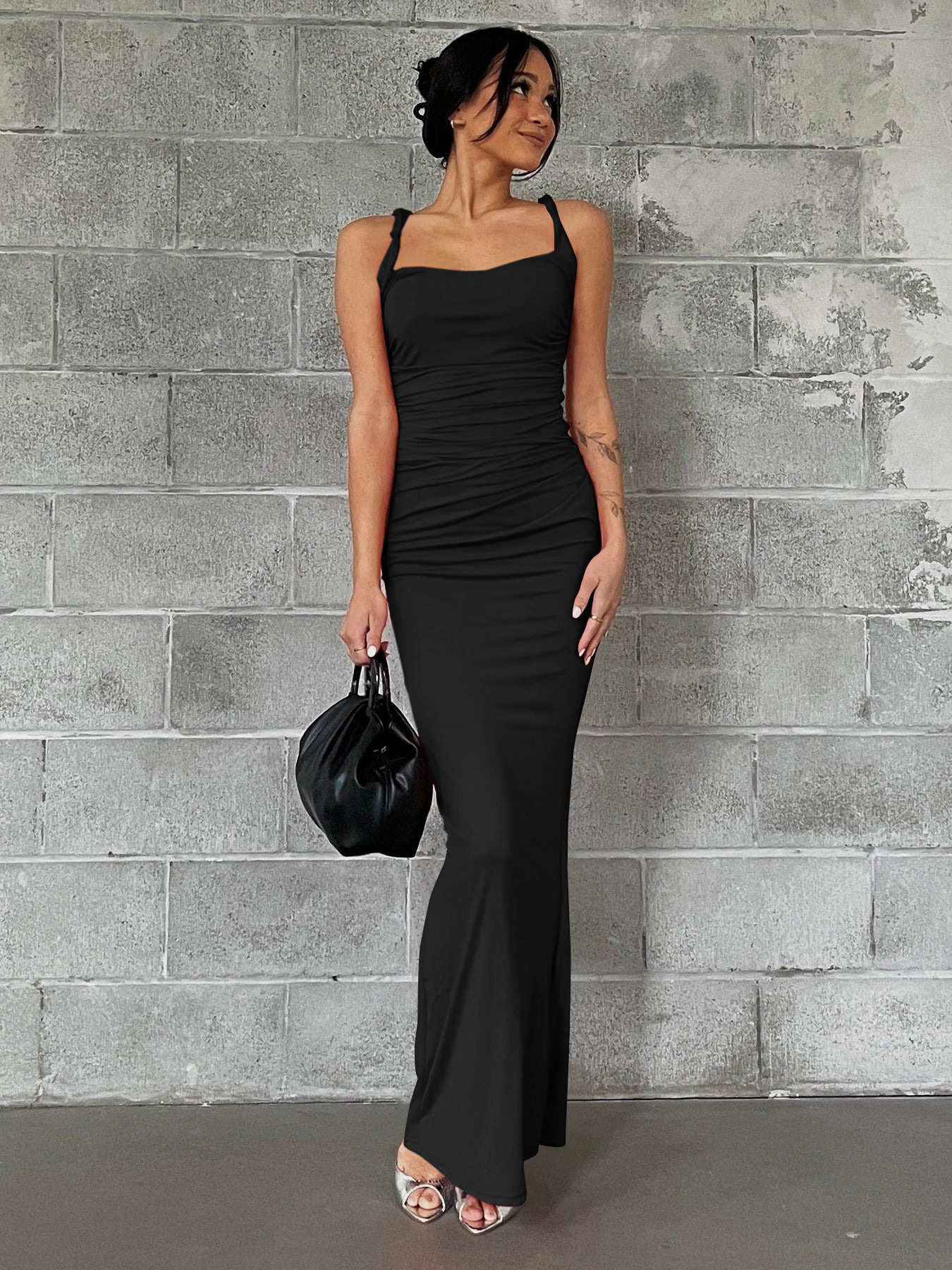 Pure Eleganz – Figurbetontes Maxikleid mit Spaghetti-Trägern